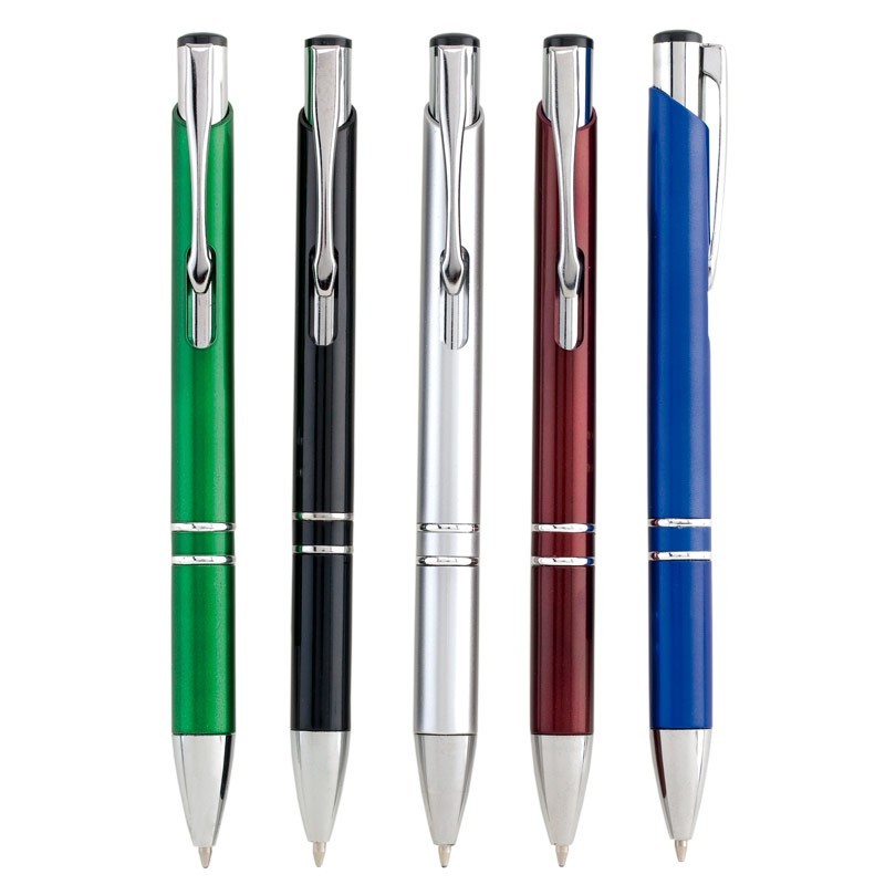 Bolígrafo plástico con clip metálico.