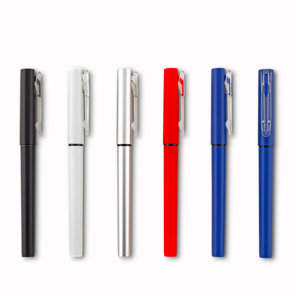 Bolígrafo roller de plástico con tapa.