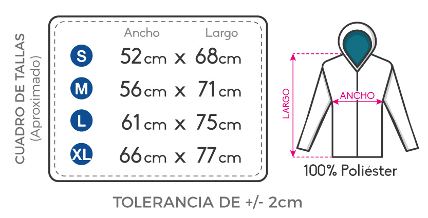 Medidas: Ver Tabla.Área de marca: 10 cm.