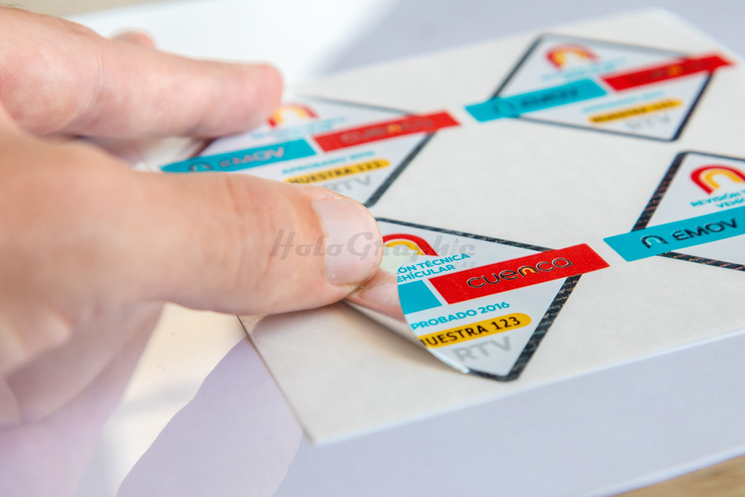 Fabricada en un material resistente al calor, humedad, rayos solares para adherir por dentro del parabrisas o por la parte exterior. Utilizadas para el control de automóviles, motocicletas, vehículos de transporte público y/o carga.