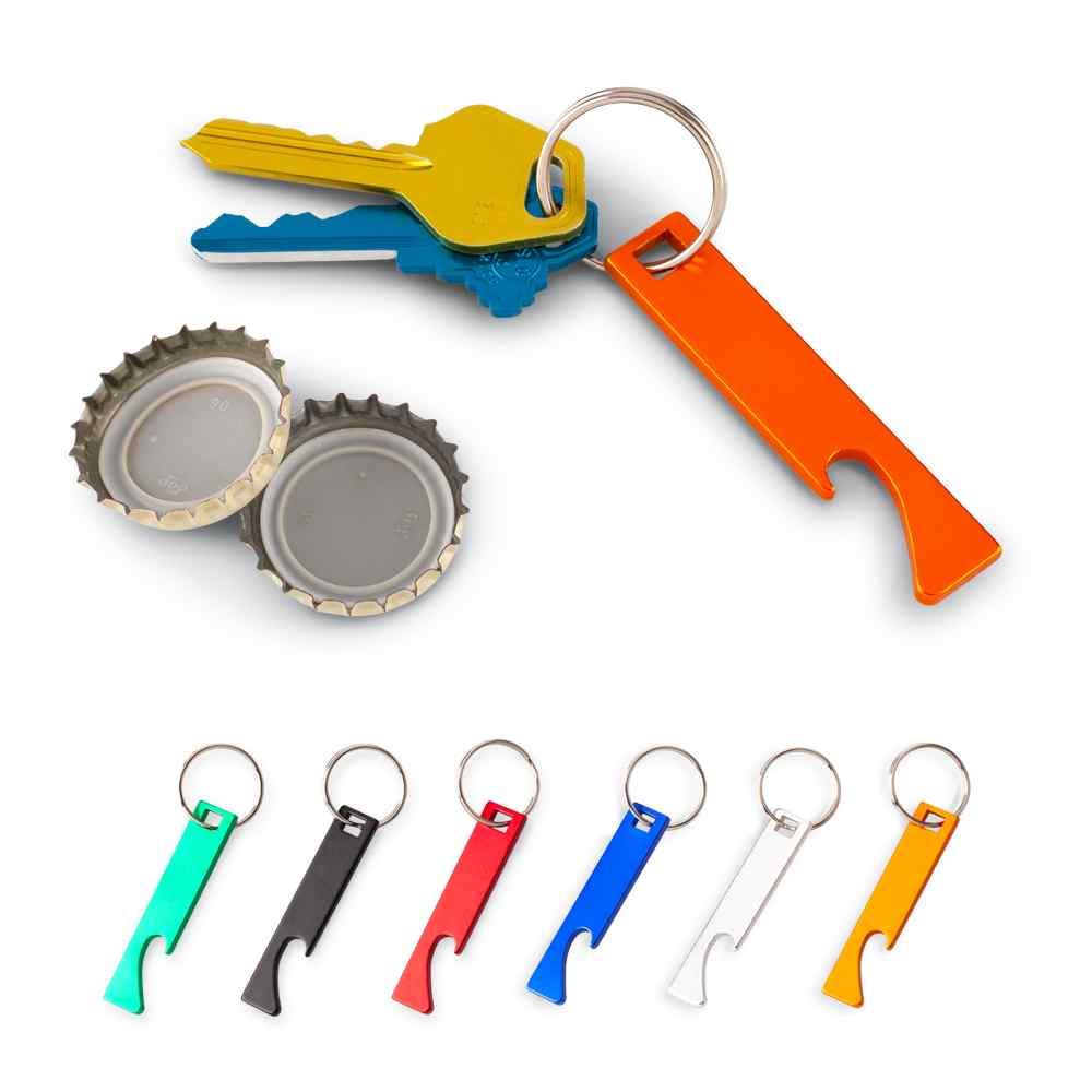 Llavero destapador en aluminio.