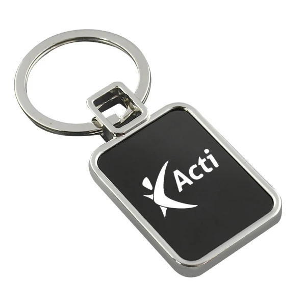 Llavero metálico con marco plateado e interior negro. De 3×4 cm.