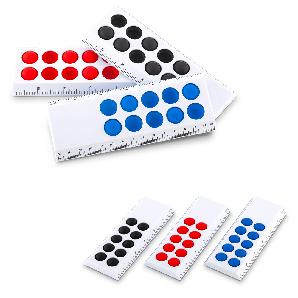 Regla plástica de 15 cm con burbujas antiestrés.