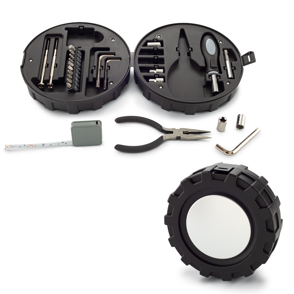 Set de herramientas de 24 piezas en estuche plástico. Cierre a presión. Empaque caja individual.
