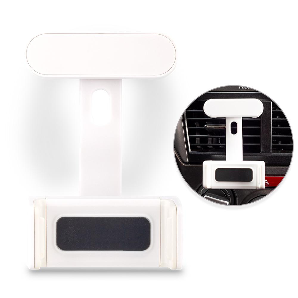 Soporte plástico para colocar en la rejilla del ventilador del carro. Base con rotación de 360°. Empaque caja individual.